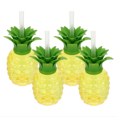 Ananász formájú pohár szett – 4 darabos, szívószállal WF1356143-4A Ananász formájú pohár szett – 4 darabos, szívószállal WF1356143-4A Dobd fel a nyári bulikat, medencés partikat vagy tematikus rendezvényeket ezzel a vidám, ananász formájú pohárkészlet