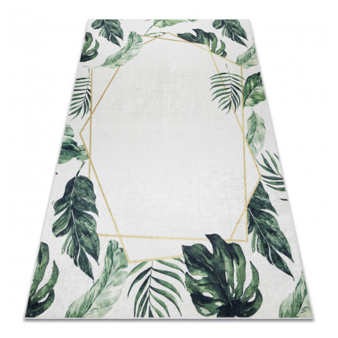 1 kép ANDRE 1168 mosható szőnyeg Levelek, geometriai csúszásgátló - fehér / zöld 120x170 cm