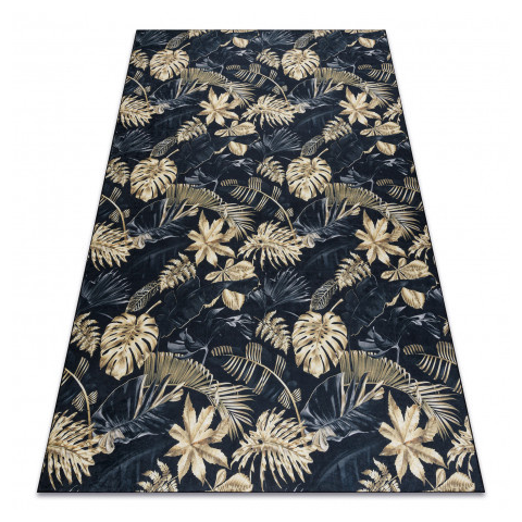 ANDRE 1311 mosható szőnyeg Levelek csúszásgátló - fekete / arany 120x170 cm lakástextília termékleírás