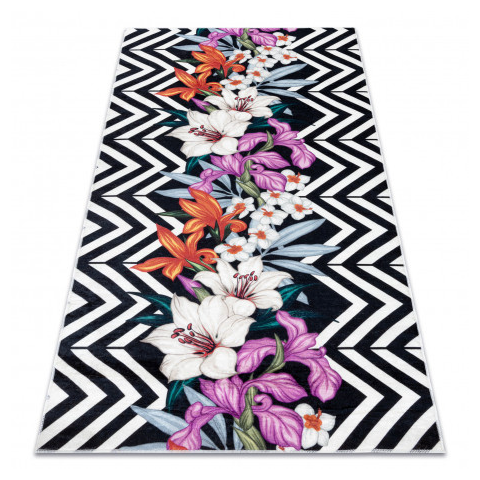 1 kép ANDRE 2300 mosható szőnyeg virágok, cikcakk csúszásgátló - fekete / fehér 120x170 cm