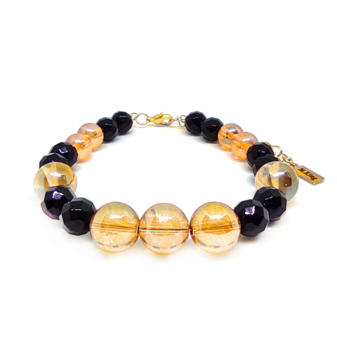 Figyelem! Nem szakad, nem nyúlik! Tartós ékszer. Az ékszer ásványai és tartozékai: – 10 mm-es és 8 mm-es angyal aura gyöngyök – 8 mm-es ónix ásvány gyöngy – M.King márkajelzésű nemesacél logóbiléta a csatnál – Záródása: