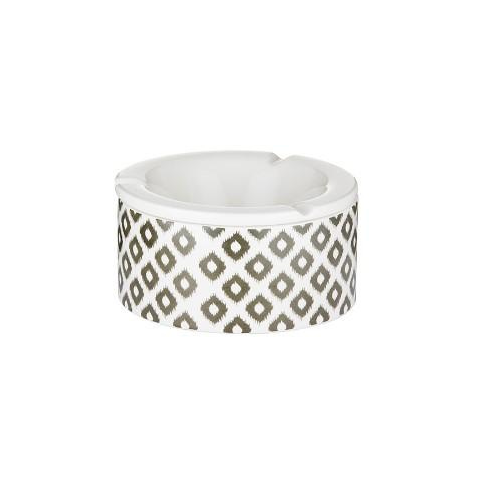 Az Angelo márkájú modern hamutartó elegáns, fehér alapon szürke geometriai mintájával nemcsak praktikus kiegészítő, hanem stílusos dísze is lehet otthonának vagy teraszának.14 cm-es átmérőjével és 7,5 cm magasságával kényelmes méretet biztosít. A felső perem levehető, így a tisztítás rendkívül egyszerű. Három vájat található rajta, amelyek kényelmesen tartják a cigarettát. Tartós kerámia anyagból készült, így hosszú távon megbízható választás.