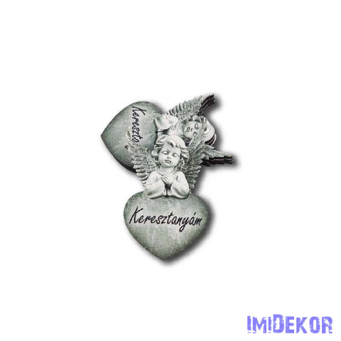 1 kép Angyal kőhatású szivecskén 5x7,5cm - Keresztanyám