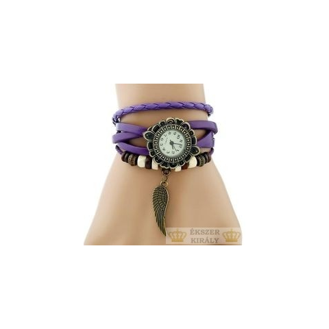 1 kép Angyalszárnyas bőr női karkötő-óra, lila