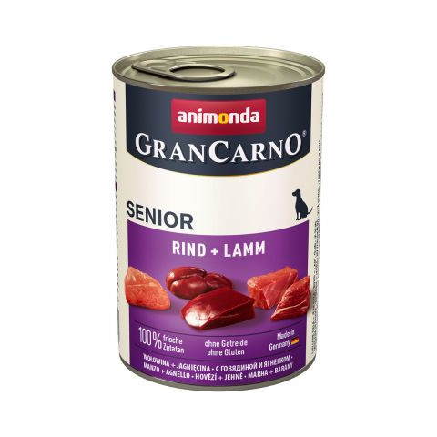 Minimum rendelhető mennyiség: 6 db Animonda GranCarno Marha + bárány prémium minőségű konzerv eledel idős kutyáknak. - Gabonamentes - Csirkementes Teljes értékű eledel idős kutyák részére . A GranCarno kutyaeledel kizárólag friss húsfélékből készül,