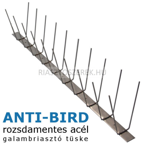 Anti-Bird 2 soros rozsdamentes acél galambriasztó tüske 50 cm Ponthegesztett teljesen rozsdamentes időjárásálló galamb távoltartó tüske sor. Az Anti-Bird galambriasztó tüske fizikailag nem engedi leszállni és odafészkelni a galambokat a tüskével védett te