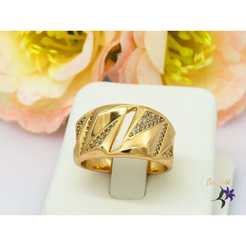 Antiallergén metszett és kis czirkónai kövekkel díszített szép gyűrűSzin: 18K Szélesség: 10mm