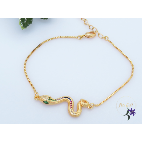 Antiallergén kígyós karlánc színes cirkóna kövekkel Szin: 18K Méret: 18cm +3 cm / 1mm -10mm