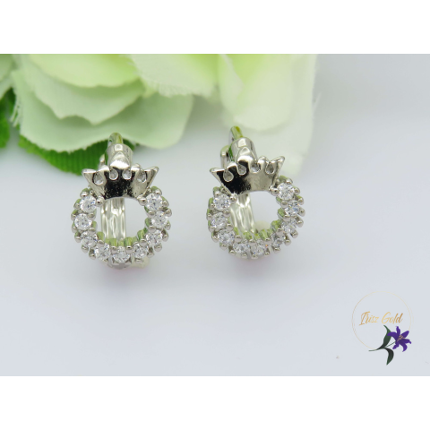 Antiallergén kis koronás gyermek fülbevaló apró fehér cirkóna kövekkel Szin: rodium Méret: 8x6mm Zár: karika belső átmérő 8mm