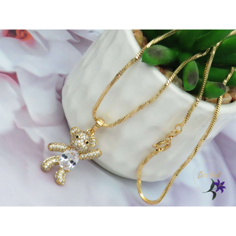 Gold Filled macis medálos nyaklánc .Cirkónia kövekkel díszített maci medál hasa egy fehér cirkóna kőSzin: 18K Méret: 45cm/2mm Medál: 25x15 mm