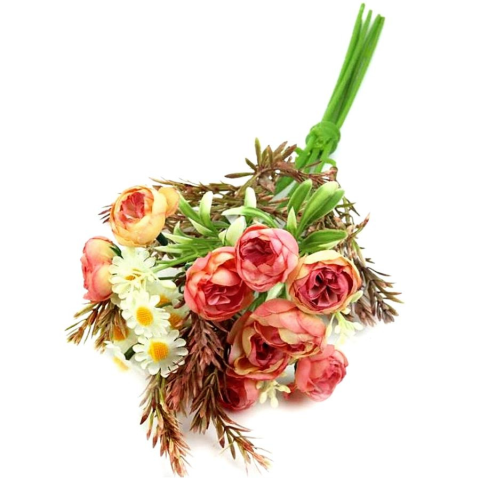 Selyemvirágcsokor antik barack színű virágokkal, műzölddel, igényes, hangulatos alkotásokhoz. Felhasználhatod koszorúkhoz, asztaldíszekhez, de önmagában is tökéletes, soha el nem hervadó dekoráció.