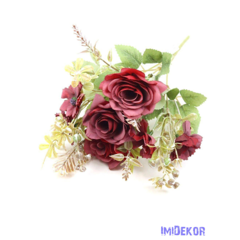 Antik deres rózsa csokor 33 cm - Bordó dekorációs kellék 1 kép