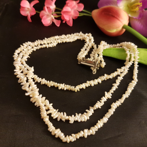 1 kép Antik édesvízi tenyésztett gyöngy nyakék 3 soros /77/