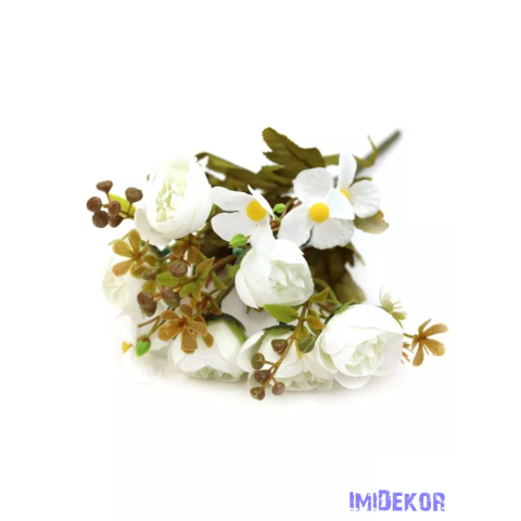 Antik leveles kis boglárka csokor 32 cm - Fehér dekoráció 1 kép