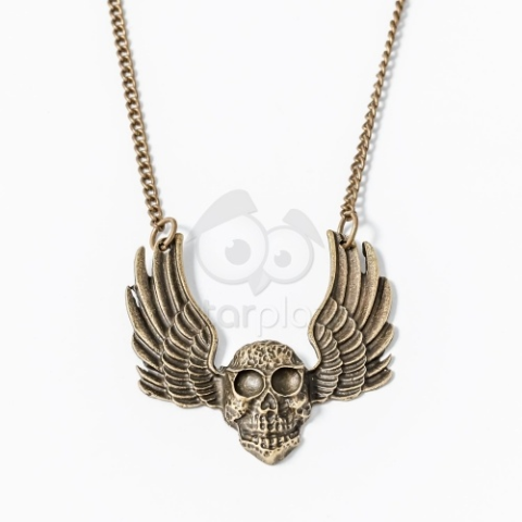 Fashion Antikolt szárnyas halálfej medálos nyaklánc Egy halálfejes ékszert általában férfiakon képzelünk el. De miért is ne viselhetne ilyet egy nő is. A vagány csajok is szeretik az ékszereket, csak kicsit máshogy! Egy ilyen kiegészítő erőt, bátorságot, vagányságot sugároz. Mutasd meg a világnak, hogy nem csak a törékeny nők hordhatnak kifinomult ékszereket!A koponya elsősorban a halál, az idő, az elmúlás szimbóluma. Több mitológiában is az égbolt a kozmi