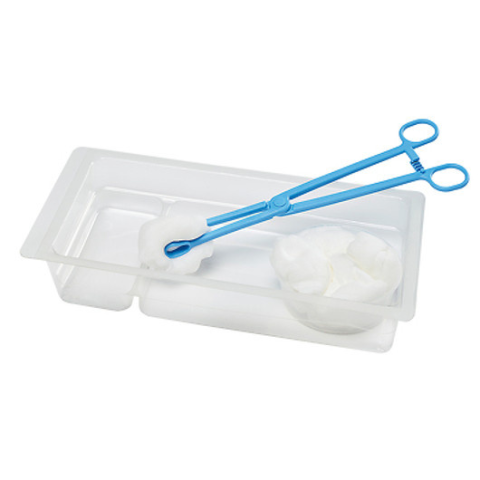 Egyszer használatos, steril termékek csomagja, bőrfelület előkészítéshez. A szett tartalma: 1 db Magfogó, műanyag, 24 cm, kék 5 db Gömbtörlő, szőtt, No.5, extra nagy méretű 1 db Műanyag mércés tál 150 ml