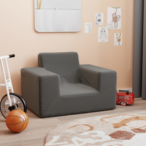 1 kép Antracitszürke puha plüss gyerekkanapé