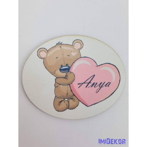 Anya szivecskés maci 6,5x8cm - Ovális dekorációs kellék 1 kép