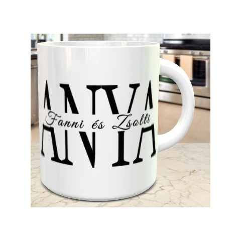 Anyák napi ajándék, gyermekek nevével bögre. Egy kedves ajándék Édesanyáknak anyák napjára, személyre szabható gyerekneves bögre születésnapra, névnapra is kiváló meglepetés. Gyerekneves bögre többféle színű kerámia vagy zománc, tartós minta akár mosogat