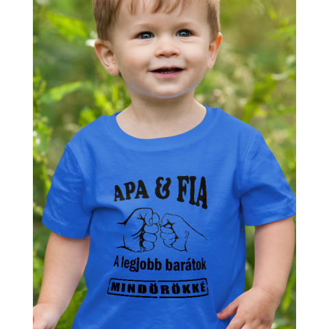 Apa-fia gyerek póló, apa és fia legjobb barátok. Gyerek póló meglepetés apáknak. Apa és fia a legjobb barátok mindörökké gyerek póló. Tökéletes választás apák napjára és születésnapra apáknak. Most akciósan csak 1 darab kapható.
