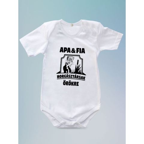Apa-fia ajándék, apa-fia horgász baba body. Szívhez szóló ajándék a legkisebb horgászpalántáknak és büszke apukájuknak! Ez a baba body azt üzeni: Apa és fia – horgásztársak örökre. Tökéletes választás, ha szeretnél egy különleges meglepetést születésnapra