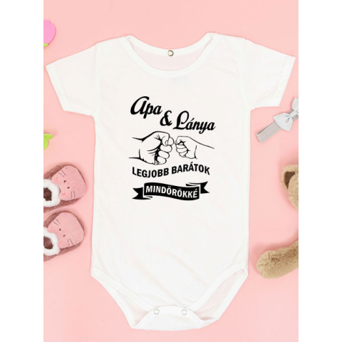 Apa lánya baba body, legjobb barátok. Egy igazán különleges baba body, amely kifejezi az apa és lánya közötti mély köteléket. Megható ajándék lehet születésnapra, Apák napjára vagy akár karácsonyra. A legjobb barátok feliratú kombidressz remek meglepetés