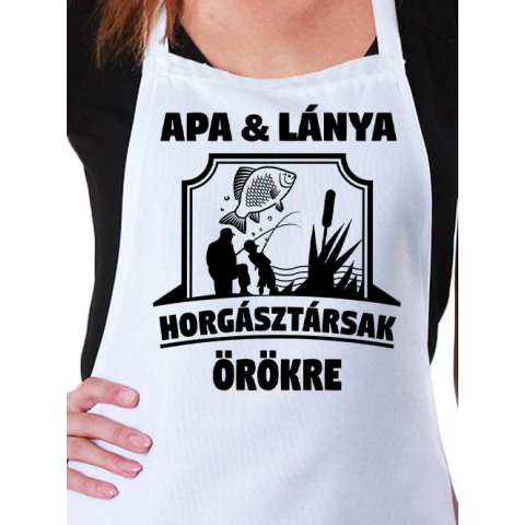 Apa-lánya ajándék, apa és lánya horgásztársak kötény Édesapáknak és lányuknak akik mindig együtt pecáznak és a legjobb fogások mindig akkor vannak, ha együtt mennek ki a vízpartra. Lepd meg apukád vagy lányod születésnapján, névnapján egy szuper pecás köt