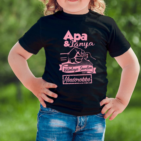 Apa lánya gyerek póló, különleges szerelem póló. Ajándék Édesapáknak, ami minden apukának megható ajándék lehet ha ezt viseled születésnapján, apák napján, karácsonykor. Fejezd ki a különleges kapcsolatot apa és lánya között egy gyerek pólóval. Viseljétek