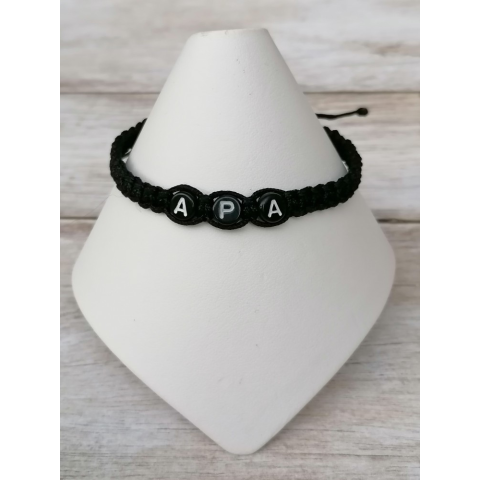 Férfi macramé karkötő APA felirattal Fonott férfi karköt Rendelhető más felirattal is! Gyöngy mérete 8mm Mérete állítható. Alap méret : 17cm