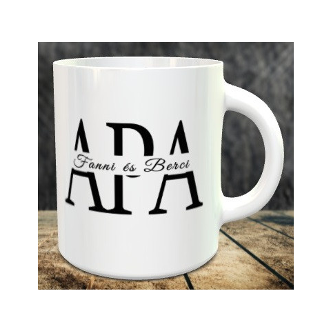 Apák napi ajándék, gyermekek nevével bögre. Egy kedves ajándék Édesapáknak apák napjára, személyre szabható gyerekneves bögre születésnapra, névnapra is kiváló meglepetés. Gyerekneves bögre többféle színű kerámia vagy zománc, tartós minta akár mosogatógé