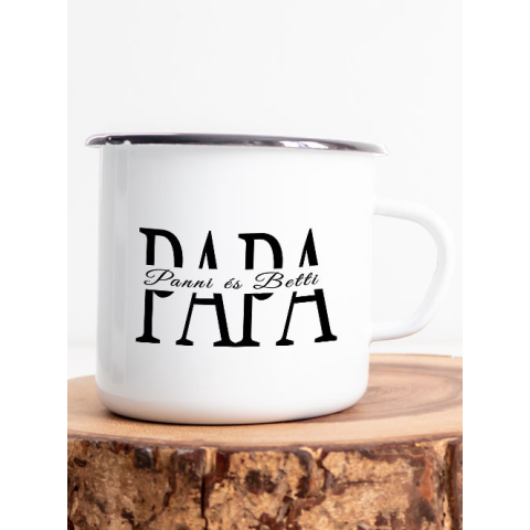 Apák napi ajándék, unokák nevével bögre. Egy kedves ajándék Nagypapáknak apák napjára, személyre szabható Papás bögre születésnapra, névnapra is kiváló meglepetés. Unoka neves bögre többféle színű kerámia vagy zománc, tartós minta akár mosogatógépben is