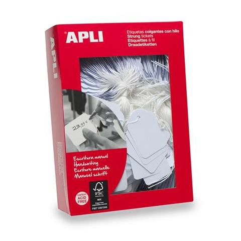 Árazócímke, 11x29 mm, APLI, fehér - kiválóan alkalmas ékszerek, bizsuk és más kis méretű termékek felárazására - fehér színben - a címke színével megegyező színű zsinórral - megkapta az FSC (Felelős Erdőgazdálkodás Tanácsa) tanúsítványát, megfelel a
