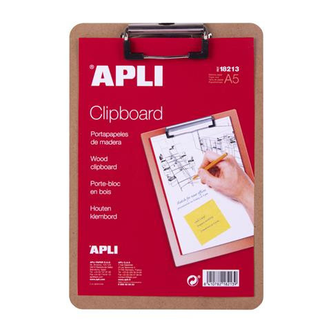 Felírótábla, fa, A5, APLI préselt fa alapanyag erős leszorító csipesz karcálló, tartós kivitel méret: 225x155 mm (lapméret: A5) Gyártó/első EU forgalmazó elérhetősége: APLI PAPER S.A.U Avda. Arraona, 120-124, Centro Industrial Santiga, 08210 Barbera