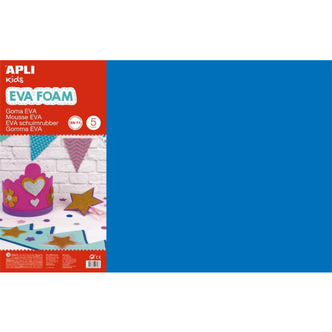 Moosgumi, 400x600 mm, APLI Kids Eva Sheets, kék - kreatív gumilap - 400 x 600 mm - ideális kézügyességet fejlesztő és oktatási célokra - 5 ív/ csomag - laponként címkézve, a könnyebb értékesítés miatt Gyártó/első EU forgalmazó elérhetősége: APLI PAPE