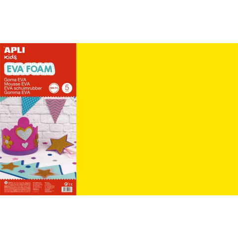 Moosgumi, 400x600 mm, APLI Kids Eva Sheets, sárga - kreatív gumilap - 400 x 600 mm - ideális kézügyességet fejlesztő és oktatási célokra - 5 ív/ csomag - laponként címkézve, a könnyebb értékesítés miatt Gyártó/első EU forgalmazó elérhetősége: APLI PA