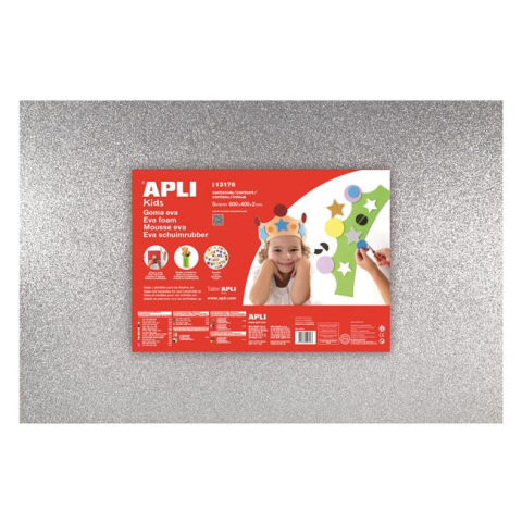 Moosgumi, 400x600 mm, glitteres, APLI Kids Eva Sheets, ezüst - kreatív gumilap, glitteres - ideális kézügyességet fejlesztő és oktatási célokra - könnyű vágni és ragasztani - 400x600 mm - 3 ív/csomag - csillogó ezüst színben Gyártó/első EU forgalmazó
