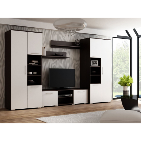 1 kép APOLLO WENGE FEHÉR FALI EGYSÉG nappaliba való bútorgarnitúrához TV SZEKRÉNY