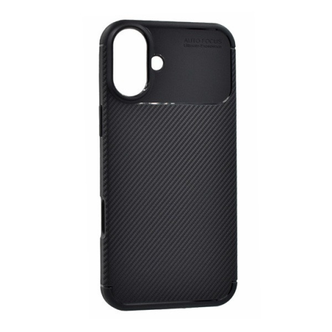 1 kép Apple iPhone 16, Szilikon tok, közepesen ütésálló, légpárnás sarok, karbon minta, fekete