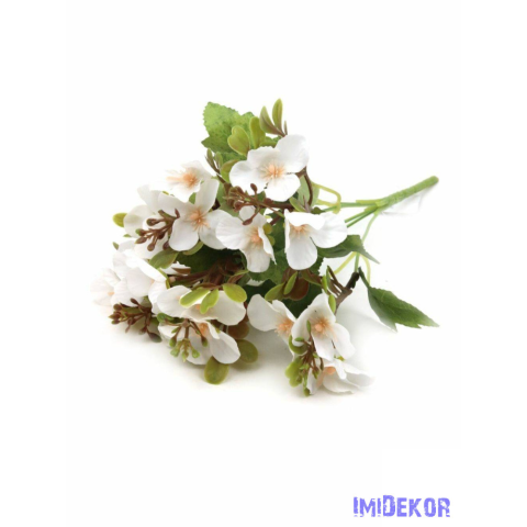 Apró virágos kis selyem csokor 31cm - Fehér dekoráció 1 kép