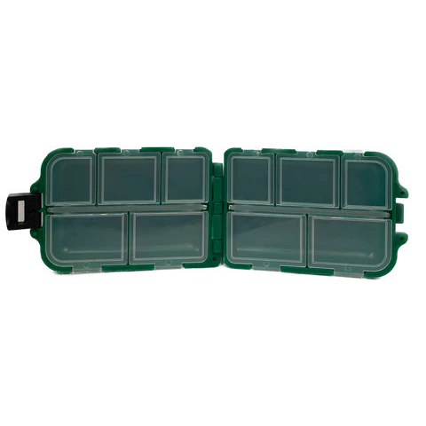 Szétnyitható aprócikk tároló doboz. Horgok, forgók, kapcsok és egyéb aprócikkek tárolására. Méret: 10*6*3 cm Választható szín: zöld, kék, fekete