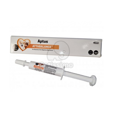 Jellemzők: - Az Aptus Attabalance paszta jótékony probiotikumokat (Enterococcus faecium), prebiotikumokat (pektin és hínár) és adszorbenseket (kaolin és klinoptilolit) tartalmaz. A prebiotikumok táplálják a jótékony probiotikumokat a bélben. Együtt szinbiotikus hatást hoznak létre, amely támogatja a kiegyensúlyozott bélkörnyezetet. - Az Enterococcus faecium egy tejsavbaktérium, amely gyakran előfordul kutyák és macskák belében is. Az Enterococcus faecium képes megtel