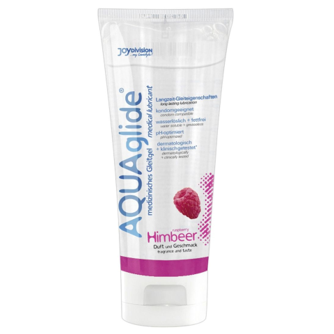 AQUAglide - vízbázisú síkosító - málna (100ml) 100ml-es kiszerelés. JoyDivision AQUAglide - Vízbázisú síkosító gél optimális síkosító hatással, málnás ízzel és illattal! Óvszerrel is használható, vízben oldódó és zsírmentes. Bőrgyógyászatilag és klinik
