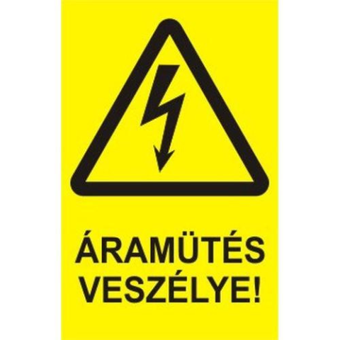 Áramütés veszélye! - műanyag, 150*100 információs tábla, állvány árgrafikon