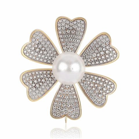 Arannyal Bevont Ezüst Bross Fehér Édesvízi Gyönggyel, ROS546