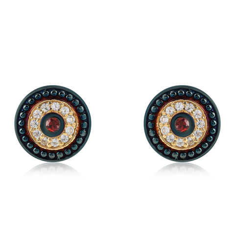 Arannyal Bevont Ezüst Fülbevaló Barton Gránáttal és Fehér Topázzal, ROS241