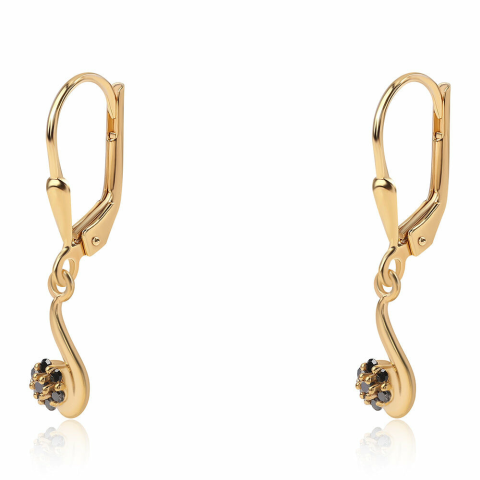 1 kép Arannyal Bevont Ezüst Fülbevaló Fekete Gyémánttal, ROS839