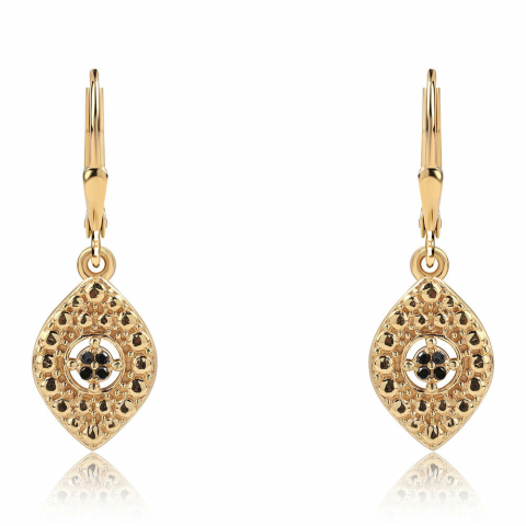 Teljes Arannyal Bevont Ezüst Fülbevaló Fekete Gyémánttal, ROS894 termékleírás