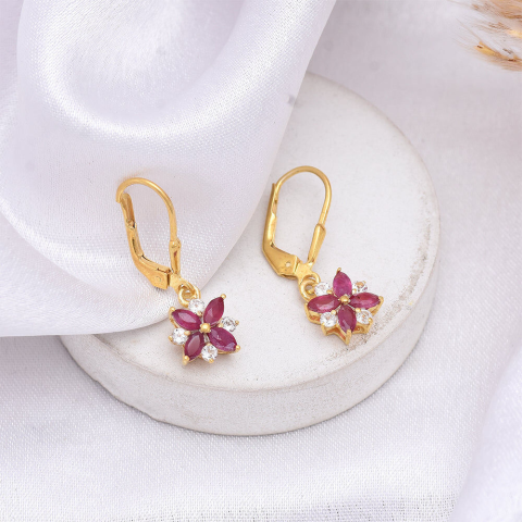 1 kép Arannyal Bevont Ezüst Fülbevaló Madagaszkári Rubinnal és Fehér Topázzal, XMP129
