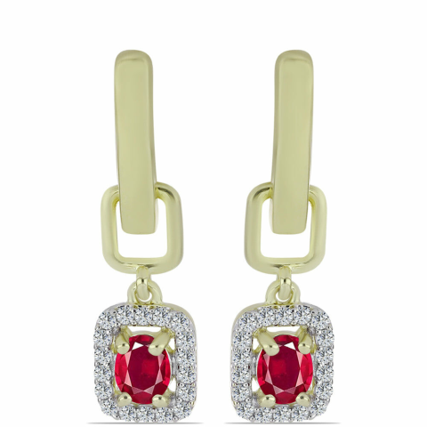1 kép Arannyal Bevont Ezüst Fülbevaló Madagaszkári Rubinnal és Fehér Topázzal, Y60412