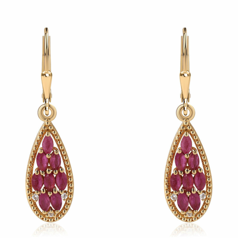 1 kép Arannyal Bevont Ezüst Fülbevaló Mozambiquei Rubinnal és Fehér Topázzal